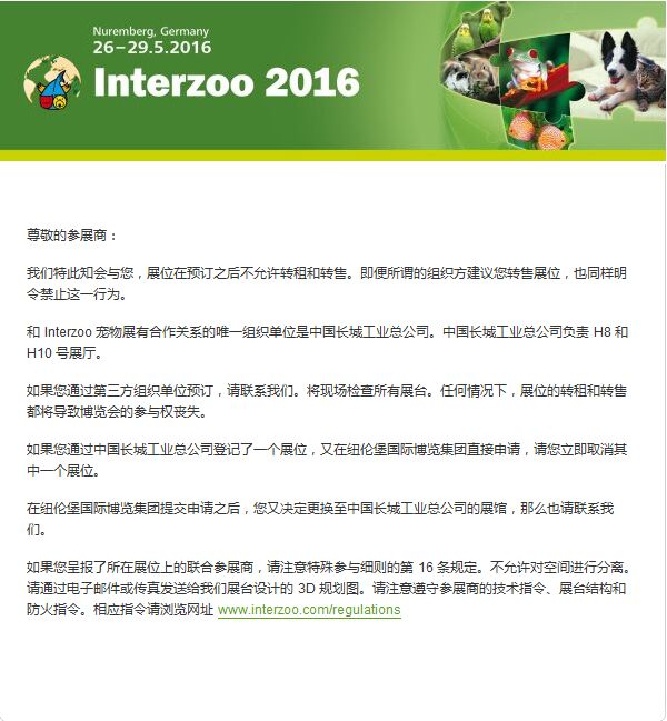 關于中國企業申請16年德國寵物展interzoo的聲明